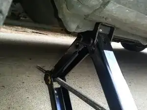 Поднимите автомобиль домкратом до тех пор, пока вес автомобиля снова не ляжет на домкрат, затем снимите подставку.