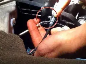 Теперь нужно расположиться под рамкой селектора на напольном покрытии. Если проследовать за тягой, идущей от трансмиссии, вы увидите, что она никуда не прикреплена.
