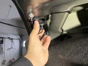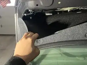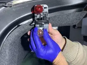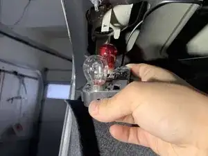 Осторожно потяните обшивку багажника вниз, чтобы получить доступ к патрону лампы.