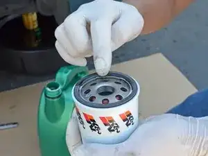 Дайте 12–24 часа, чтобы всё масло полностью стекло из старого масляного фильтра.
