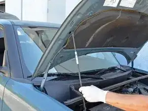 Извлеките упор капота из выемки в капоте и установите его обратно в зажим.