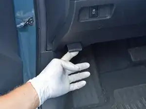 Откройте дверь водителя и потяните за рычаг открытия капота вверх, пока не услышите щелчок.