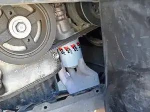 Хватайте масляный фильтр ключом для фильтров и ослабьте, повернув примерно на пол-оборота против часовой стрелки (если смотреть снизу).
