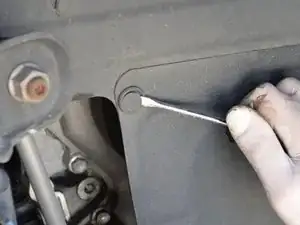 Ослабьте сливную пробку вручную, пока она полностью не выйдет, и масло не начнёт вытекать из поддона.