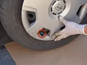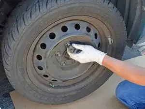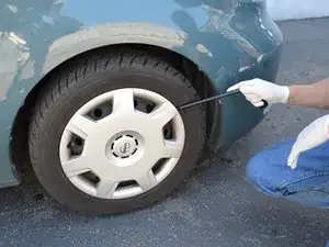 Если у вас стальные диски с колпаками, используйте большую плоскую отвертку или конец аварийного баллонного ключа, чтобы поддеть колпак и получить доступ к гайкам колес.
