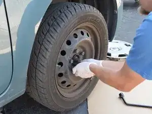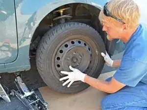 Поднимите автомобиль, пока колесо не оторвётся от земли на пару дюймов.