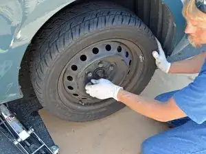 Ослабьте гайки колес на переднем пассажирском колесе на пол-оборота с помощью ключа на 22 мм или баллонного ключа.