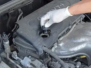 Поверните крышку против часовой стрелки, пока не сможете снять её с клапанной крышки.