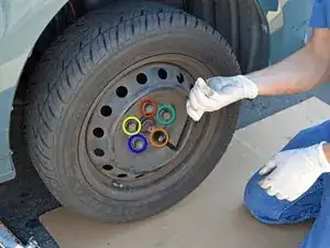 Отверните и снимите пять гаек колес с колеса.