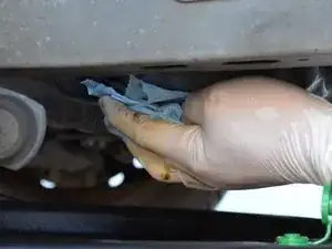 Когда поток масла уменьшится до капель, протрите область вокруг сливной пробки чистой тряпкой или полотенцем.