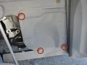 Удалите три видимых пластиковых фиксатора с заглушки, расположенной в передней части колесной ниши.