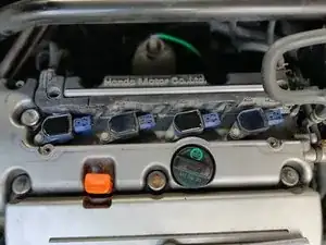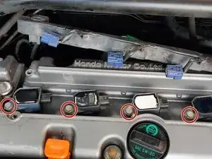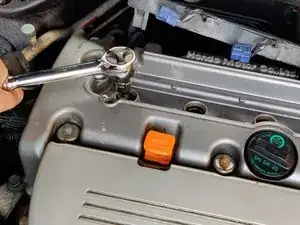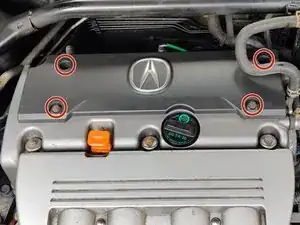 С помощью торцевого ключа 10 мм снимите четыре болта с крышки, под которой расположены свечи зажигания.