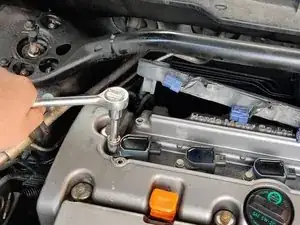 Используя удлинитель трещотки и свечной торцевой ключ 5/8", доберитесь до свечи зажигания и ослабьте её.