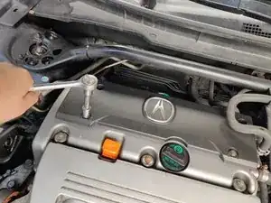 Если в вашей Acura есть подпорка капота, установите её в предусмотренное место. У большинства Acura есть газовые упоры, которые удерживают капот в поднятом положении.