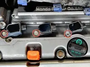 Используйте торцевой ключ 10 мм, чтобы снять болты, крепящие катушки зажигания.