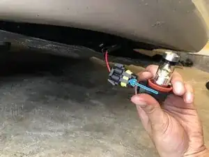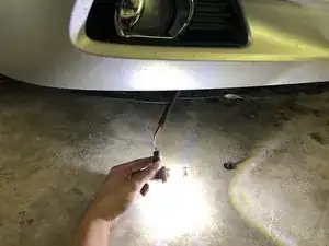 Чтобы убедиться, что новые лампы противотуманных фар работают, подключите назад отрицательную клемму, отсоединённую на шаге 2, затем включите противотуманные фары внутри салона.