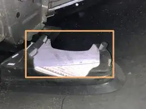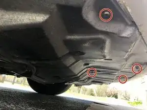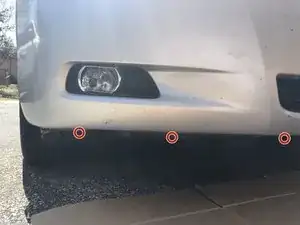 Снимите четыре болта снизу спереди автомобиля, чтобы освободить пластиковую защиту, прикрывающую заднюю часть противотуманных фар.