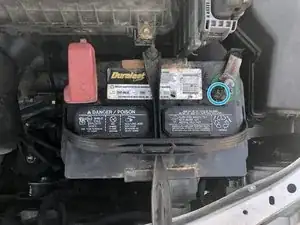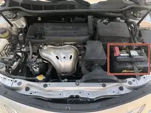 Откройте капот автомобиля и найдите аккумуляторную батарею.