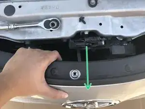После снятия болта аккуратно потяните боковую часть переднего бампера на себя, чтобы освободить бампер.