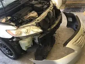 После снятия этих последнего болта и винтов передний бампер полностью отсоединён.