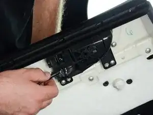 Вставьте металлический шарик в пластиковый узел ручки для открывания двери.