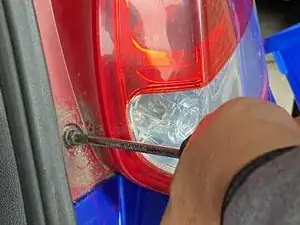 Отверткой Phillips #2 снимите два болта 10 мм, крепящие задний и габаритный фонарь.
