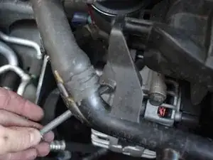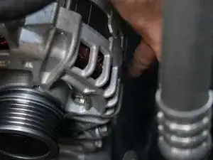 Снимите крышку и электрический разъём, расположенные справа от генератора, прежде чем снимать генератор.