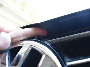 Найдите защёлку над эмблемой Volkswagen на решётке радиатора и откройте её.