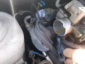 ВАЖНО, ХОТЯ И ВИДИТСЯ СТУДИЯ: Положите тряпку вот так; накройте всю область под клапаном IAC. Когда вы меньше всего этого ожидаете, вы уроните один из 2 винтов, которые крепят клапан, и найти его почти невозможно. Я делал это при одной разборке и потратил больше часа, чтобы посмотреть, где он упал и застрял.