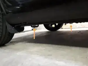 Под автомобилем расположены 4 U-образные опоры домкрата рядом с каждым колесом.