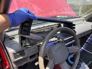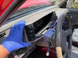 Медленно выдвигайте приборную панель. Поворачивайте её, вынимая левую сторону сильнее, чем правую.