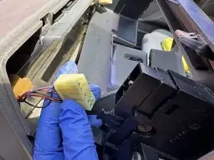 Сожмите и отсоедините два кнопочных разъема по обеим сторонам окантовки панели приборов.