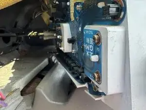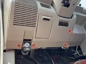 Ещё два винта крепят панель снизу, и к ним бывает трудно добраться. Лягте на спину, смотря вверх на рулевую колонку.