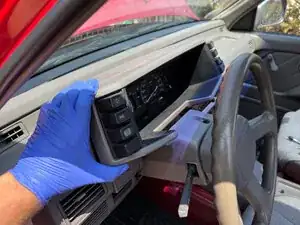 Откиньте нижний край окантовки панели приборов в сторону рулевого колеса.