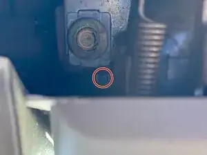 Подденьте металлическую защелку и разблокируйте трос спидометра, чтобы он получил свободу и мог смещаться вперед-назад.