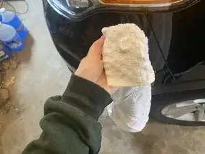 Нанесите достаточно Turtle Wax Repair and Renew, чтобы покрыть поцарапанную область на микрофибровой ткани.