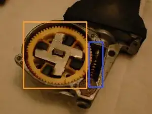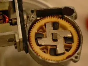 Осмотрите шестерни, особенно большую пластиковую шестерню, на предмет сильного износа, например сломанных зубьев. В таком случае потребуется новый или восстановленный мотор. Если они выглядят как на этом моторе, их можно просто заново смазать.