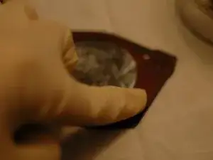 Используя плоскую отвёртку или другой подходящий инструмент, подденьте крышку с задней части корпуса шестерён и отложите её в сторону.