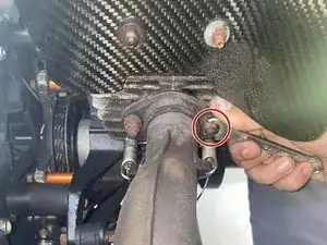 Используйте гаечный ключ 10 мм с открытым зевом, чтобы ослабить три точки крепления выхлопа.