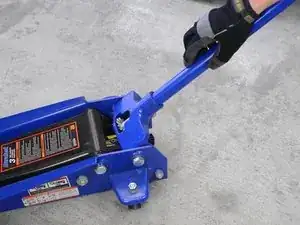 Возьмите напольный домкрат и убедитесь, что клапан сброса давления закрыт. (Обычно клапан закрывают, вращая рычаг домкрата по часовой стрелке.)