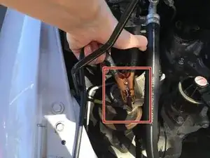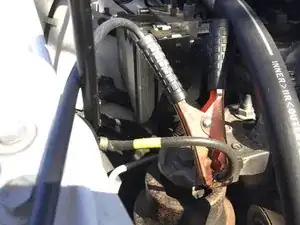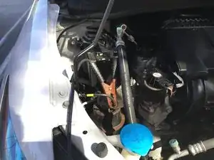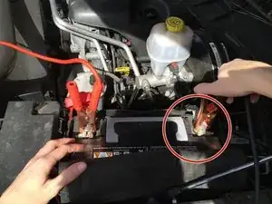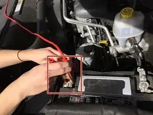 Подсоедините другой КРАСНЫЙ провод к положительному (КРАСНОМУ) выводу аккумулятора Honda Insight.