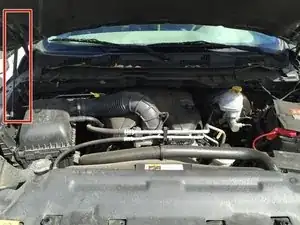 Зафиксируйте капот в открытом положении, схватив распорный шток и установив его в отверстие на внутренней стороне капота.