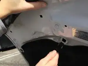 Откройте капот, просунув руку под край капота (в передней центральной части) и потянув за защёлку.