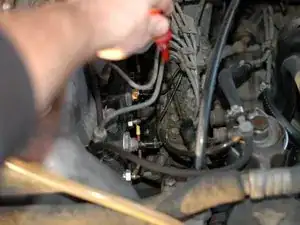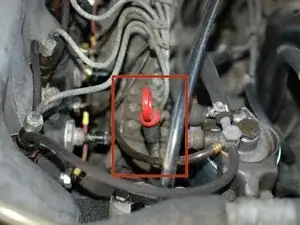 В указанной в этом руководстве модели W123 установлен дизельный двигатель, поэтому щуп находится рядом с большим вторичным топливным фильтром и жесткими трубками впрыска. Элементы вокруг вашего щупа могут выглядеть иначе.