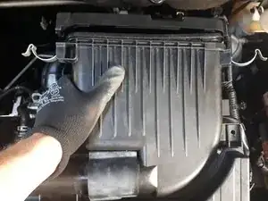 Отведите защёлки, соединяющие корпус воздушного фильтра с остальной частью впускной системы.