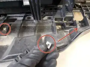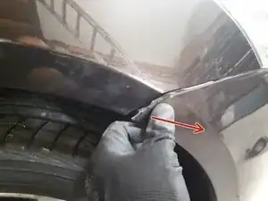 С помощью плоской отвёртки отсоедините 2 клипсы под боковой частью переднего бампера, отсоединяя каждое крыло от бампера.