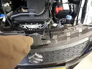 Держите бампер в центре и снимите его, двигая вниз и наружу.