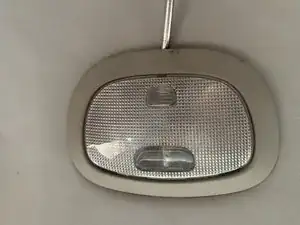 Теперь снимаем центральную лампу в салоне. Она удерживается четырьмя фиксаторами: двумя крупными основными сбоку от лампы и двумя меньшими на дальнем конце консоли.