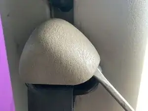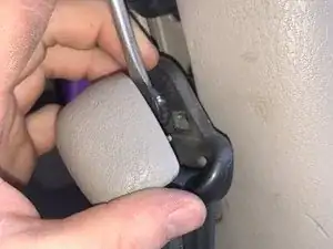 Снимите заглушку ремня безопасности. Она удерживается двумя маленькими зажимами с обеих сторон. Эти зажимы эластичные, так что заглушку можно просто поддеть, но при желании можно использовать плоскую отвертку, чтобы вытолкнуть зажимы и снять накладку.