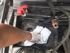 Высушите короб аккумулятора и клеммы другой одноразовой тряпкой.